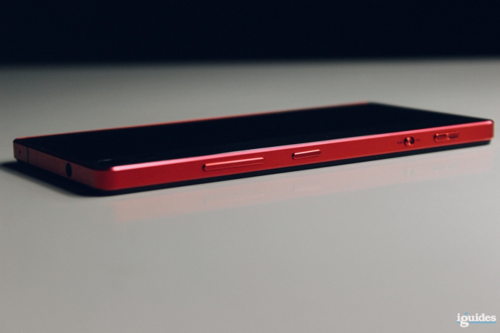 Формой смартфон очень напоминает слоеный Vibe X2, включая «ступеньку» на стыке экрана и корпуса. Разве что тех самых слоев нет, цветная рамка по периметру выполнена из алюминия, а задняя часть из стекла. В первые минуты выглядит очень красиво, но смартфон быстро покрывается отпечатками пальцев и теряет товарный вид. Размер Full HD экрана составляет 5 дюймов, так что устройство можно отнести к компактным моделям. По крайней мере, по современным меркам.