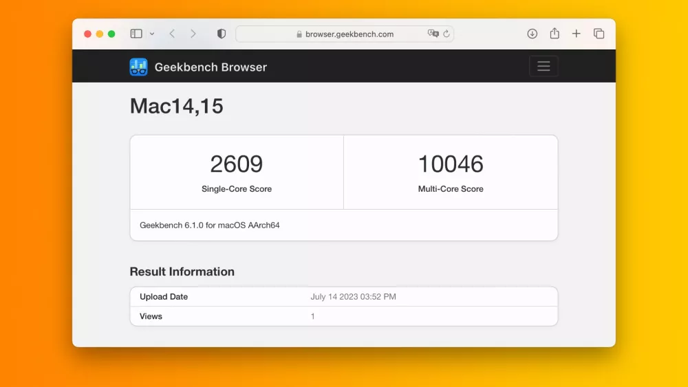 Как уже неоднократно упоминалось в этом обзоре, 15-дюймовый MacBook Air работает на чипе M2, а это 8 ядер CPU, 10 ядер GPU и 16-ядерный Neural Engine. В обзоре базовая конфигурация с оперативной памятью 8 ГБ и накопителем на 256 ГБ.