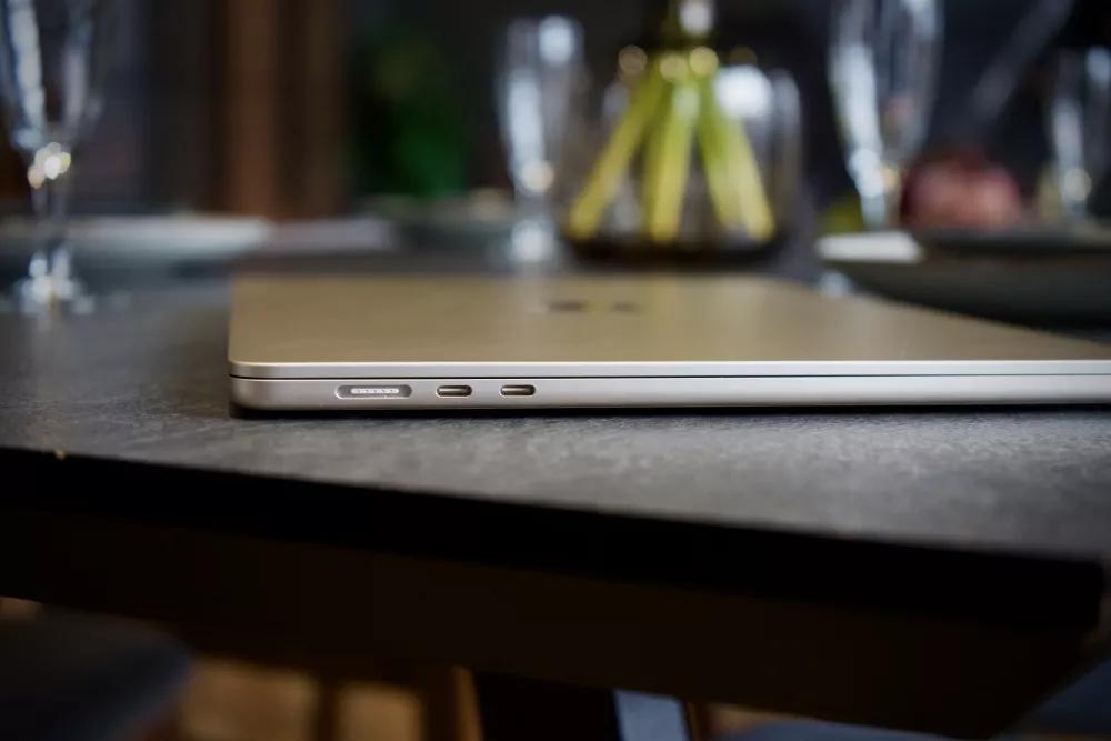 MacBook Air на M2 с 15-дюймовым экраном унаследовал силуэт своего предшественника. На мой взгляд, это эталонное решение — ноутбук выглядит лаконично, не теряя при этом узнаваемый стиль Apple.