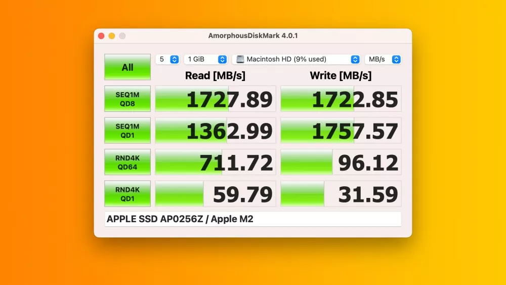 Выбирая новый MacBook Air, опираясь на цифры бенчмарка, рекомендую учитывать свой бюджет. Если разница между конфигурацией с 256 и 512 ГБ ненакладна, то в таком случае лучше остановиться на 512 ГБ. Памяти будет больше, да и запас скорости сыграет в более длительную перспективу.