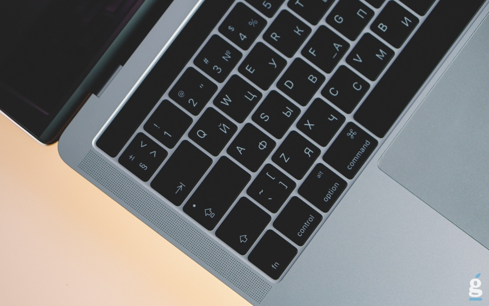 - Клавиатура. В новых MacBook Pro 13 используется механизм клавиатуры «бабочка», который впервые был представлен в MacBook с экраном 12 дюймов. Теперь речь идёт о втором поколении механизма, которое стало более удобным в использовании. Инженеры Apple улучшили тактильные ощущения при наборе, сам ход клавиш стал более чётким. Если первое поколение бабочки требовало продолжительного привыкания, со вторым переходный период будет заметно короче. Кстати, ещё у клавиатуры изменился звук нажатия — он стал более резким и звонким. Некоторые пользователи говорят, что теперь клавиатура стала намного более шумной, но на мой взгляд речь идёт именно об изменении звука, а не его громкости.
