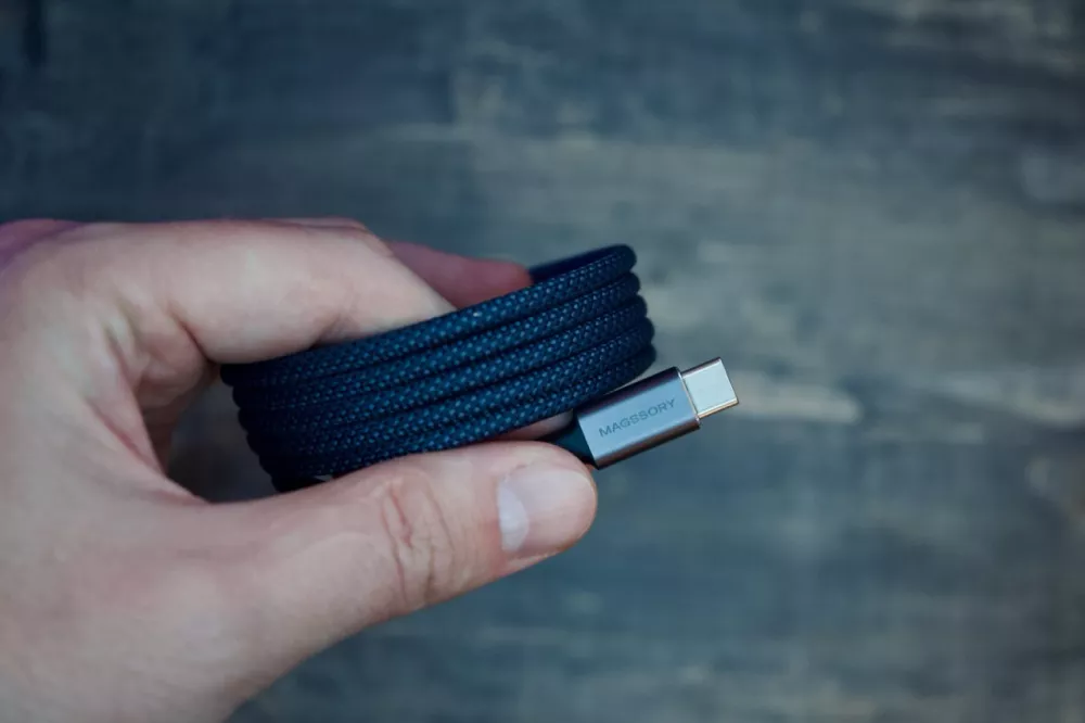 Начну, пожалуй, с базовых штук, которые у все нас в ежедневном сценарии использования. Компактный GaN-адаптер мощностью 30 Вт. Как по мне, отличный вариант для айфона. Такой можно и в поездки с собой брать.По словам производителя, зарядник оснащается защитой от перегрузки, перенапряжения и перегрева. В поддержке самые популярные стандарты — Quick Charge и Power Delivery. Следующий базовый аксессуар мне очень понравился своей простотой и удобством. Казалось бы, ну что может быть интересного в кабеле для зарядки? Может. Начать стоит с того, что он магнитный, а значит не спутывается. При желании его можно смотать в аккуратные моток и он будет держать форму. В моем случае, он еще и не болтается по рабочему столу, поскольку у меня подставка под монитор с металлической поверхностью и провод к ней примагничивается. Длина кабеля составляет 1,2 метра. Максимальная мощность зарядки — 60 Вт. Поддерживает Quick Charge и Power Delivery. Таким могу и свой MacBook Air заряжать.