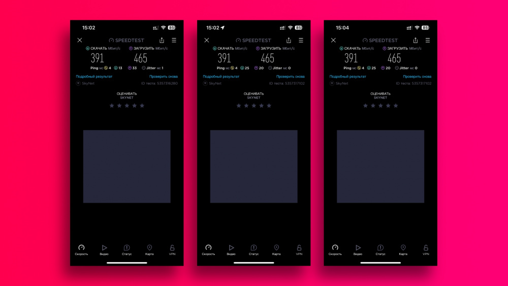 - Пятый замер в ванной комнате: 391/465 Мбит/с