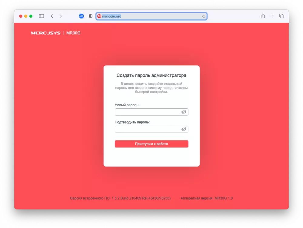 После подключения к сети открываем браузер и переходим к веб-интерфейсу с настройками Mercusys MR30G. Для этого в адресной строке введите: http://mwlogin.net