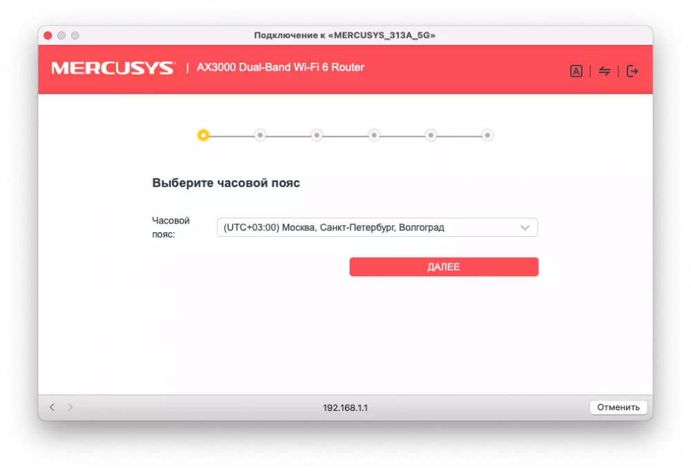 Теперь открываем браузер и переходим к веб-интерфейсу с настройками Mercusys MR80X. Для этого в адресной строке введите: http://mwlogin.net и выполняем шесть шагов первоначальной настройки.