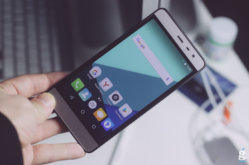 На лицевой стороне расположен пятидюймовый дисплей, изготовленный по технологии IPS, сенсорных кнопок под экраном нет – они виртуальные и вписаны в интерфейс операционной системы. Некоторым такой подход не нравится, поскольку уменьшается полезная площадь экрана, зато также сокращается высота смартфона. Тут дело вкуса, кому как больше нравится. По качеству экран оставляет приятное впечатление. Разрешение достаточно высокое для комфортной работы, с углами обзора и цветопередачей полный порядок. Для использования в солнечные дни на улице хотелось бы чуть большую яркость, но это не критично. Информация на дисплее все-таки остается читаемой.