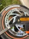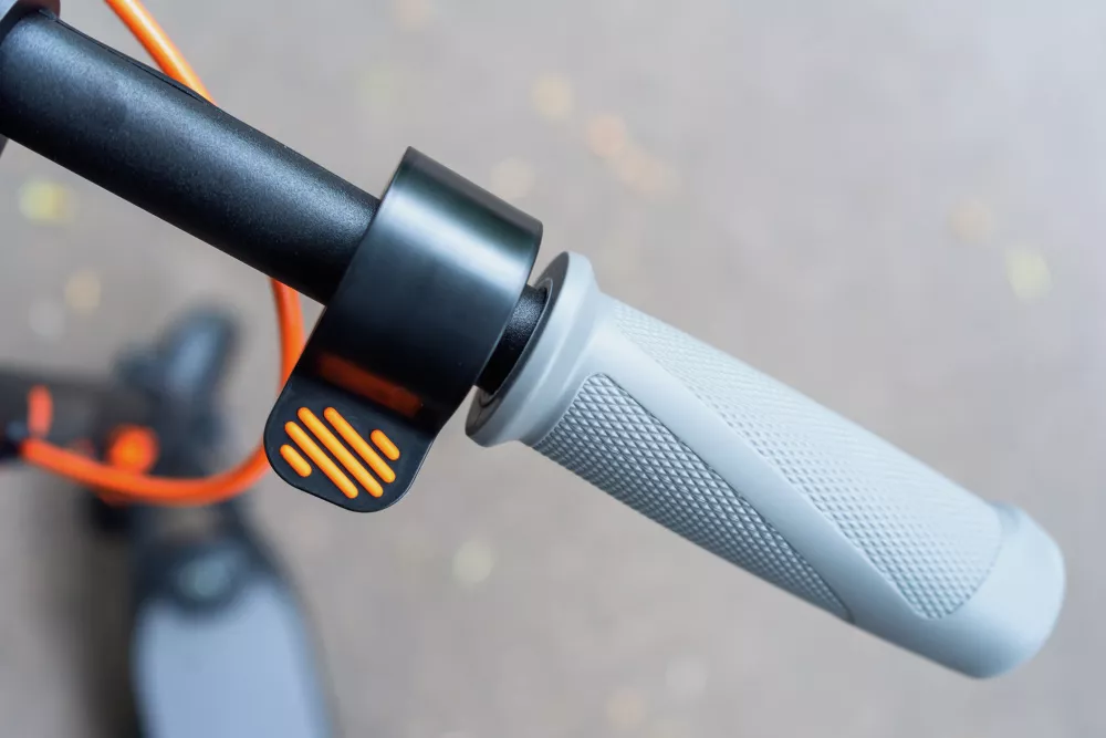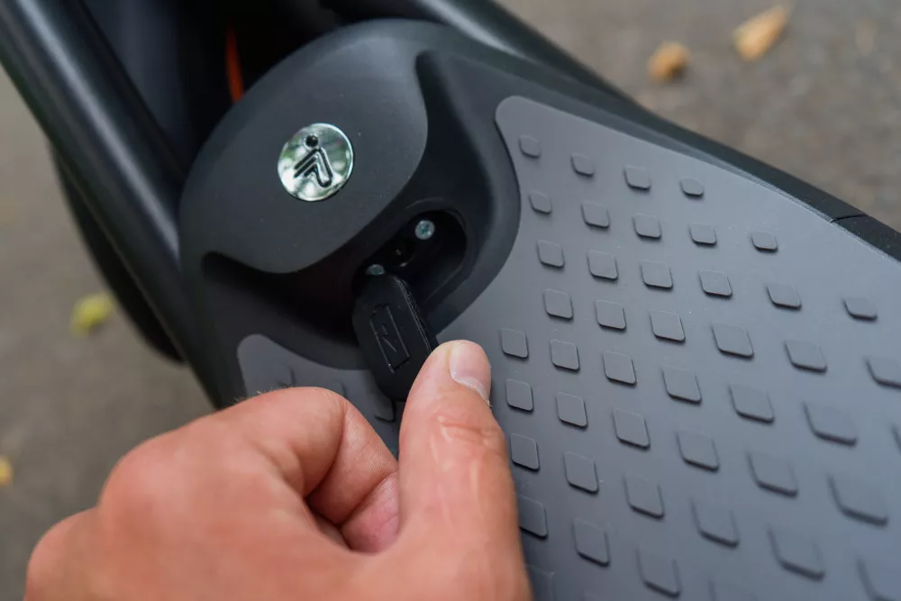 - Круиз-контроль — позволяет ездить на скутере с постоянной скоростью без необходимости удерживать акселератор. Нужно нажать кнопку на 5 секунд, дождаться звукового сигнала, отпустить её и продолжить движение. Для отключения снова надо нажать акселератор на 5 секунд. Режим не рекомендуется использовать в людных местах.