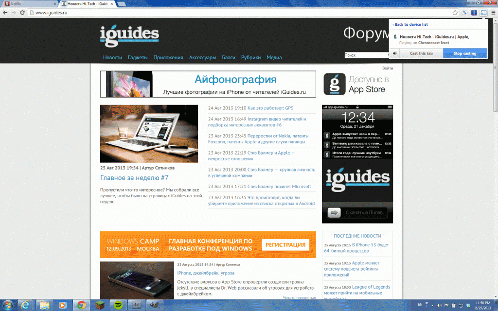 Кроме того, iOS версии YouTube и Netflix полностью поддерживают Chromecast, и их функциональность идентична функциональности их Android аналогов.