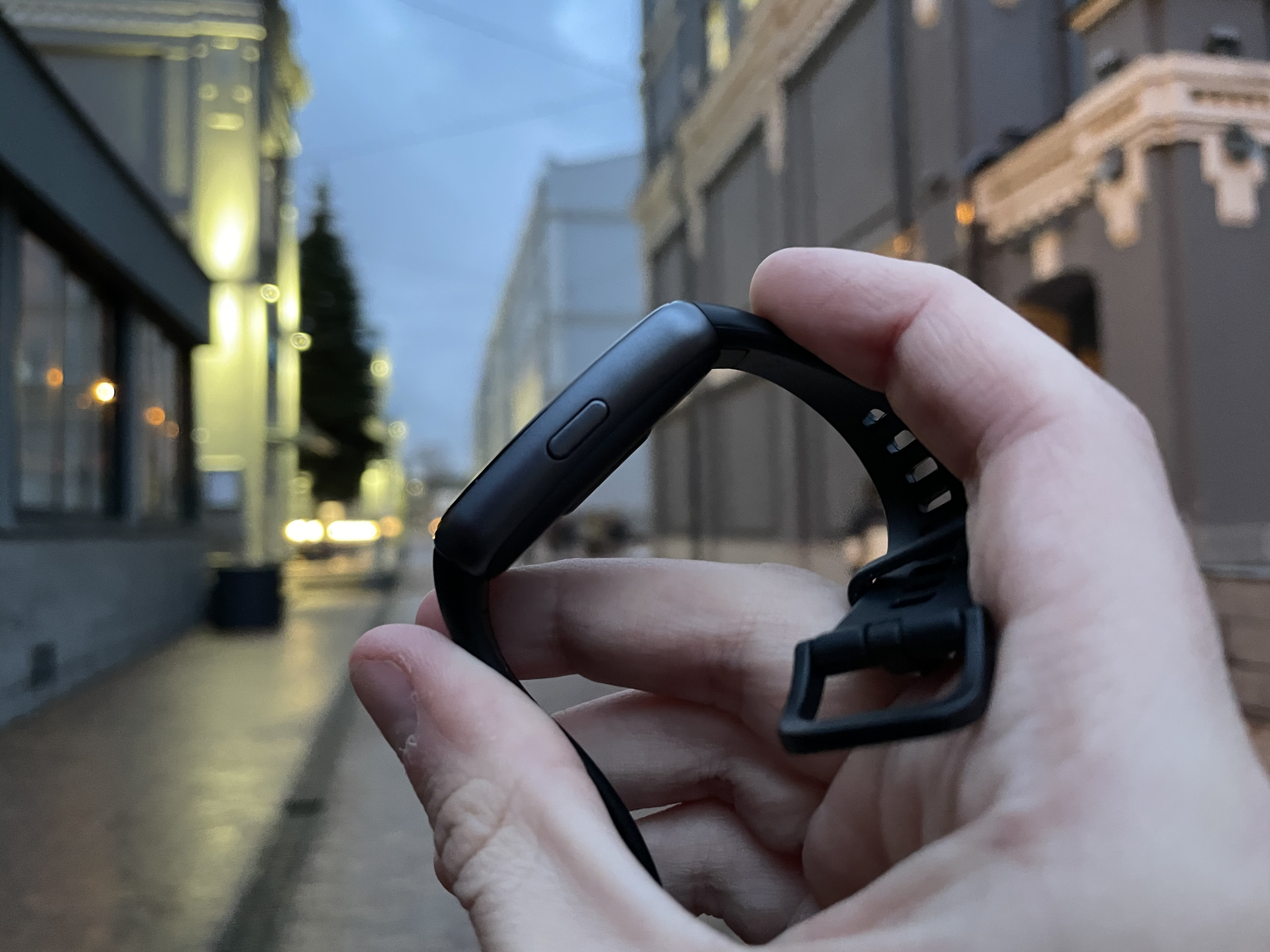 Корпус матовый, выполнен из пластика. Внешне и тактильно он напоминает металл. На правой боковой грани расположена единственная физическая кнопка. Трекер управляется с ее помощью или свайпами по экрану. Он включается одним из двух способов — нажатием на цифровую кнопку или жестом поднятия запястья.