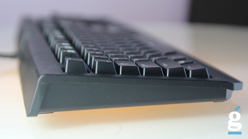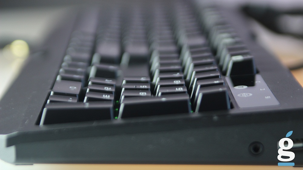 Девайс обладает полноценными размерами (существует еще компактная версия) и функционирует на основе переключателей Razer Green. Из плюсов, бросающихся в глаза при первом взгляде — небольшие габариты клавиатуры, готовой удобно вписаться в небольшой как офисный, так и домашний стол. Из минусов — практически полное отсутствие подставки под запястья, ставшей чуть ли не визитной карточкой полноразмерных клавиатур Razer.