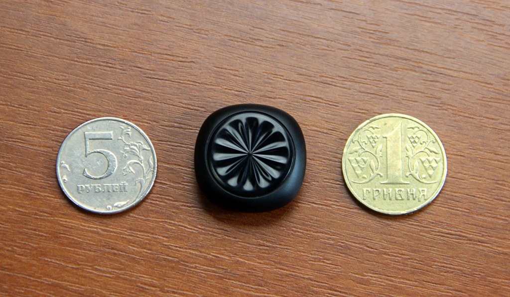 UP Move похож на пуговицу, выпуклую пластиковую пуговицу. На фронтальной стороне расположен «экран» — вставка из текстурированного пластика с двенадцатью белыми светодиодами, размещенными по кругу, как на циферблате часов. Имеются еще два индикатора: с пиктограммой полумесяца и схематичной фигуркой человека — нетрудно догадаться, что каждый обозначает. Так называемый дисплей — еще и кнопка по совместительству. Короткое нажатие приводит к включению огоньков: количество активных означает прогресс дневной цели — минуты сна или пройденное расстояние.