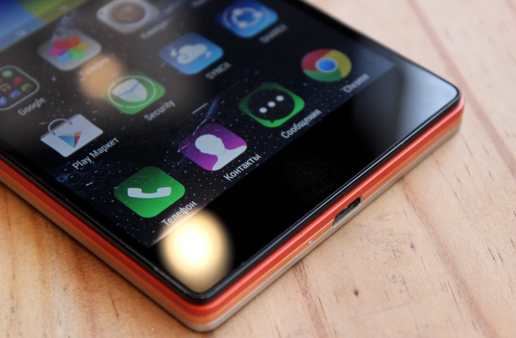 Внешний вид Lenovo Vibe X2 — самая сильная сторона смартфона. В компании решили отказаться от текстурированного пластика прошлогодней модели и округлых форм. Новый смартфон — прямоугольный брусок с плоской задней крышкой и практически прямыми углами. Главная фишка — слоеный дизайн, который будто состоит из одной черной панели и трех цветных, образующих градиент. В тестовом устройстве это оранжевый, переходящий в цвет игристого вина. Также доступны красная, ярко-рыжая и серебристая модели. Еще одна фишка — лицевая сторона, она же черный слой, на доли миллиметра меньше остального корпуса, что усиливает эффект сложенных стопкой «панелей». Дизайном Vibe X2 выделяется среди массы других устройств средней ценовой категории и доказывает: в 2014 году смартфон не обязательно должен быть скучным бруском из пластика, стекла или металла.