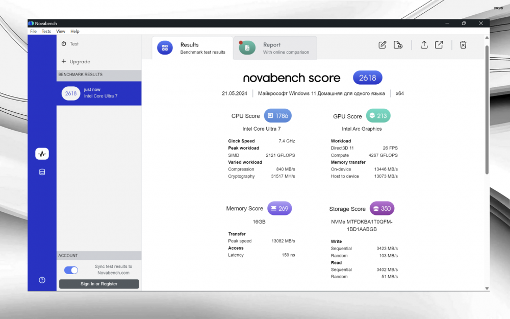 Хоть устройство и не позиционируется как геймерское, в перерыве между работой порой хочется провести пару каток в онлайне или запустить одиночную игрушку. Встроенная графика Intel Arc Graphics не способна тянуть на «ультрах» самые последние тайтлы, но вполне справится с играми прошлых лет. Так в GTA V и «Ведьмаке 3» можно поиграться с высокими настройками и получить 50-60+ кадров. Такой же результат достижим в PUBG и CS2, но графику придется опустить ниже среднего.