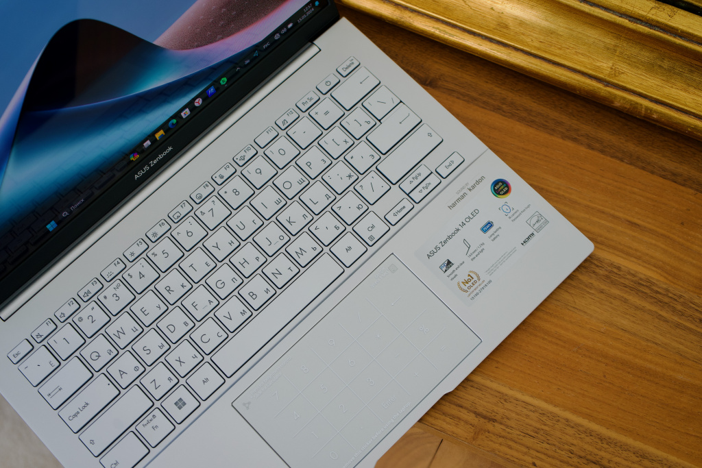 В остальном, как и другие продукты бренда, Zenbook 14 OLED собран на славу. Корпус не скрипит и не прогибается в процессе эксплуатации и работы. Приятно, что создатели стабильно следят за качеством исполнения.