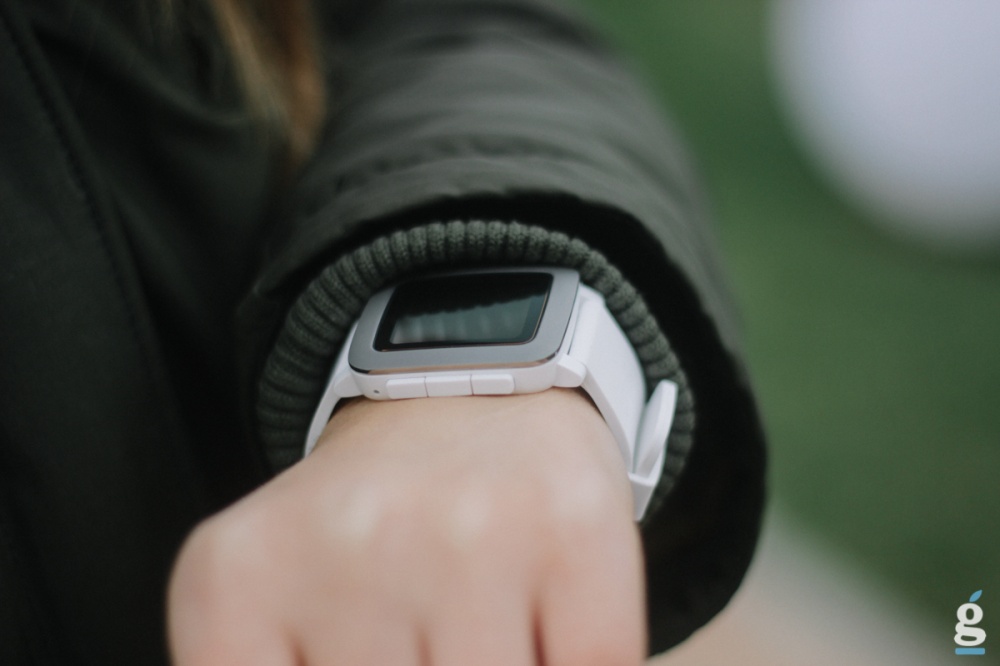 Если говорить о внешнем виде Pebble Time, дизайн получился бесхитростный. Пластиковый квадрат с закругленными углами и металлической рамкой, небольшой дисплей с возможностью отображения 64 цветов и спортивный силиконовый ремешок. Последний, к слову, безумно приятный на ощупь — материал мягкий и бархатистый, прекрасен при ежедневной носке. По сторонам корпуса находятся механические кнопки для управления: левая возвращает на предыдущий уровень меню, две справа отвечают за пролистывания, а кнопка между ними подтверждает действия. Экран не сенсорный, что поначалу кажется очень непривычным, но это недолго будет смущать пользователя. Интерфейс часов простой и удобный, его специально оптимизировали для управления кнопками. По сравнению с первым поколением часов, да и стальной вариацией, Pebble Time выглядят значительно лучше. Теперь их стало проще представить на руке обычного человека, а не увлеченного технаря. Впрочем, все это далеко от идеала — продукты Pebble при всем желании не удастся поставить в один ряд с такими красавцами как Apple Watch, Moto 360 или Huawei Watch. Хотя, может, это и не требуется. Весовые и ценовые категории у них все-таки разные.