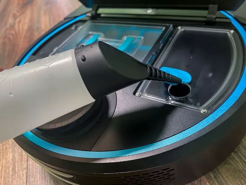 Система подачи воды дозированная. Она обеспечивает экономный расход — 300 мл воды хватит для мытья до 150 квадратных метров. Также Legee 7 может продолжать уборку с того места, где закончил, после дозарядки на базе, это позволяет ему убирать большие площади до 400 кв.м.