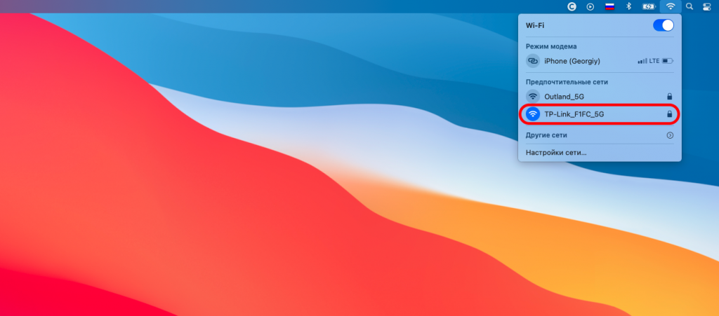 Находим в списке доступных сетей TP-Link_F1FC_5G (5 ГГц) или TP-Link_F1FC (2,4 ГГц) и подключимся с помощью пароля, который указан на нижней стороне роутера.