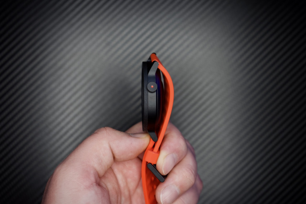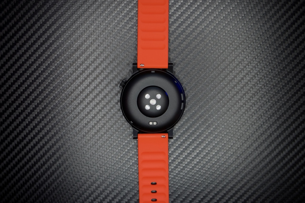 Круглая форма часов с плоским безелем и экраном 2.5D создаёт лаконичный силуэт. Сборка ощущается качественной. Часы очень легкие — всего 52 г, поэтому их практически не ощущаешь даже во время длительного использования.