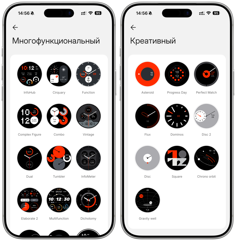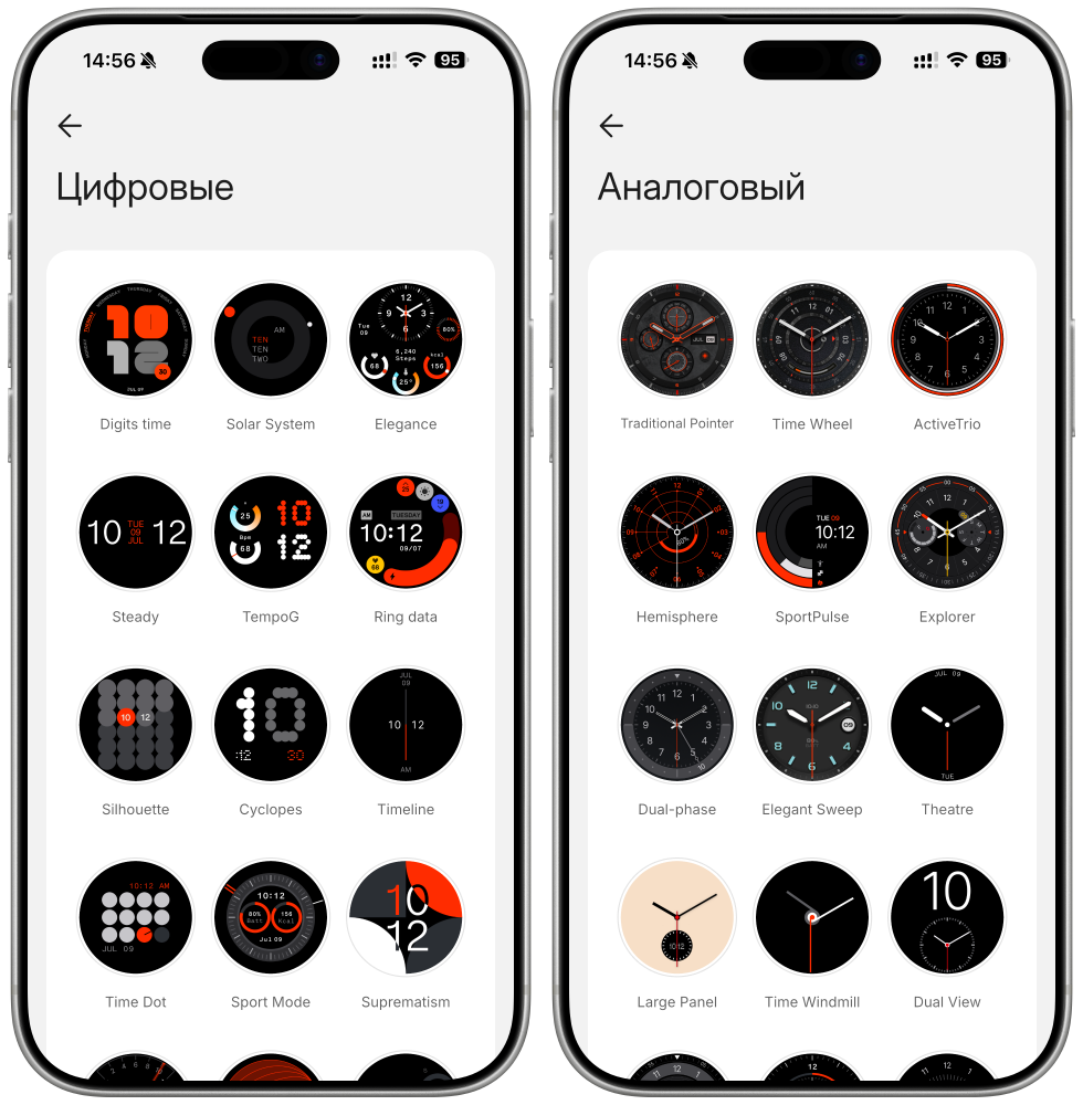 Пользователям доступно более 120 вариантов циферблатов, включая динамические и интерактивные варианты, что позволяет подстроить внешний вид часов под личные предпочтения и стиль. Как по мне, циферблаты — это еще одна фирменная фишка CMF Watch 3 Pro, поскольку они выполнены в узнаваемой эстетике бренда Nothing. Из минусов отмечу, что они не все поддерживают 24-часовой формат и русский язык.