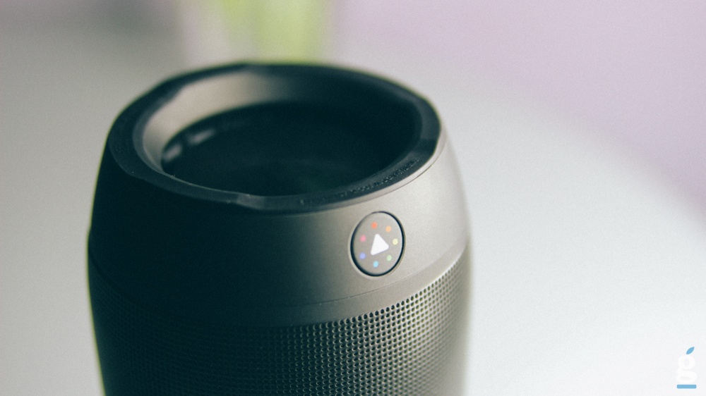 Стоит включить JBL Pulse 2, все меняется. После приветственного аккорда корпус начинает переливаться разными цветами. Красный, синий, зеленый, белый, сиреневый, желтый — колонка может светиться практически любым цветом. Это выглядит невероятно круто, даже спустя два месяца я то и дело ловлю себя на том, что засмотрелся на переливы корпуса. А еще у нее на корпусе есть специальный сканер цвета. В теории это должно помочь вписать ее в интерьер — наводите сканер на предмет нужного цвета, жмете на кнопку, и колонка меняет расцветку на нужную. На практике это работает не идеально, да и нечасто требуется. Кроме как пару раз побаловаться применения сканеру я не нашел.