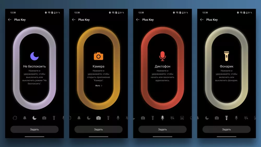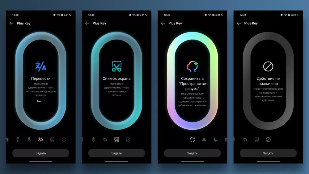 На левой грани расположена кнопка Plus Key — это аналог клавиши действия в айфоне. По умолчанию она переключает режимы: Звук, Вибрация и Без звука. При желании на кнопку можно назначить другие действия, например, быстрый запуск камеры, фонарик, диктофон, переводчик или создание скриншота.