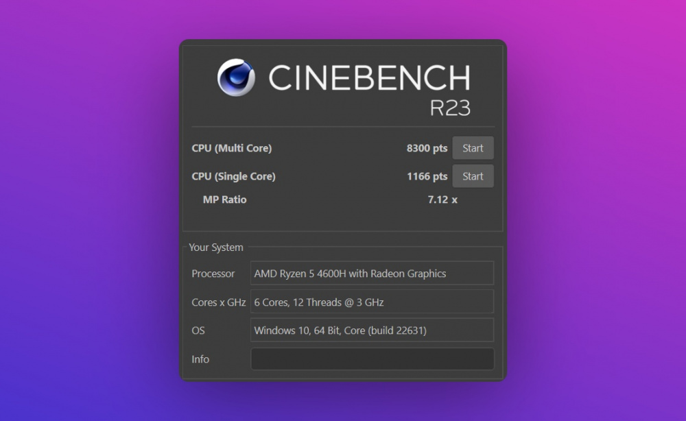 - Процессор: AMD Ryzen 5 4600H (6 ядер, 12 потоков, максимальная частота 4,0 ГГц, TDP 40 Вт) + интегрированная графика AMD Radeon