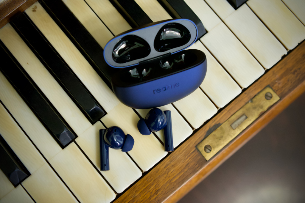 Помимо нового смартфона бренд привез в Россию беспроводные наушники realme Buds Air 5. Внешне они почти не отличаются от гаджета предыдущего поколения. В моем обзоре устройство синего цвета, футляр матовый, а сами наушники глянцевые.
