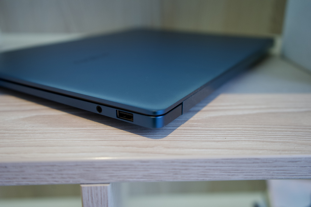 realme Book Prime получил клиновидный силуэт. На левой грани размещаются два порта USB-C, один из них Thunderbolt 4. На правой разместились один USB-A и разъем 3,5 мм для подключения проводных наушников.