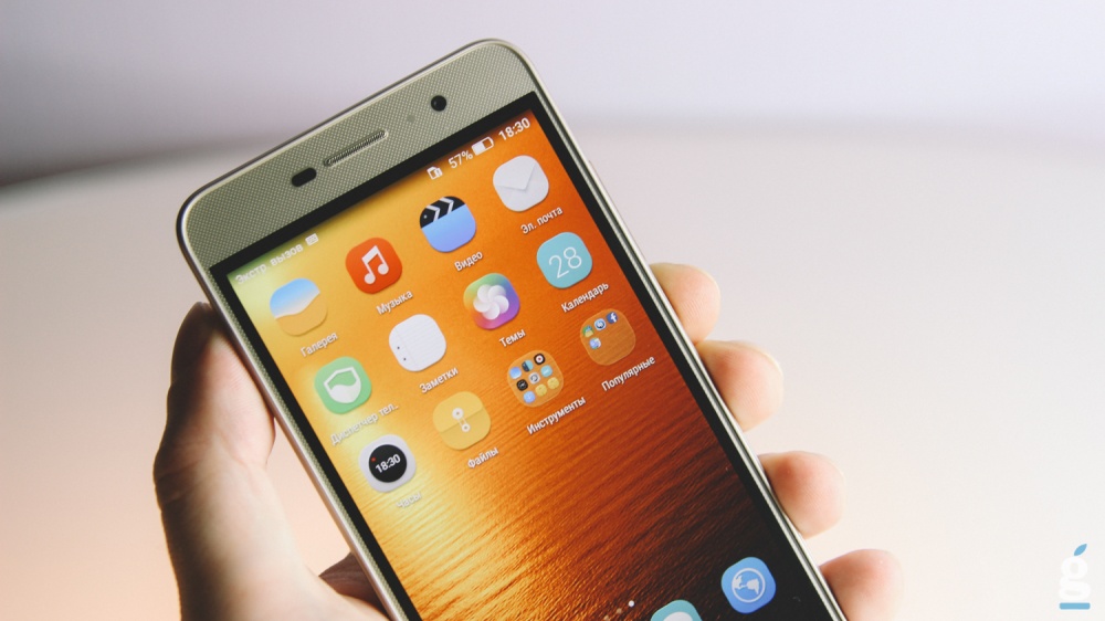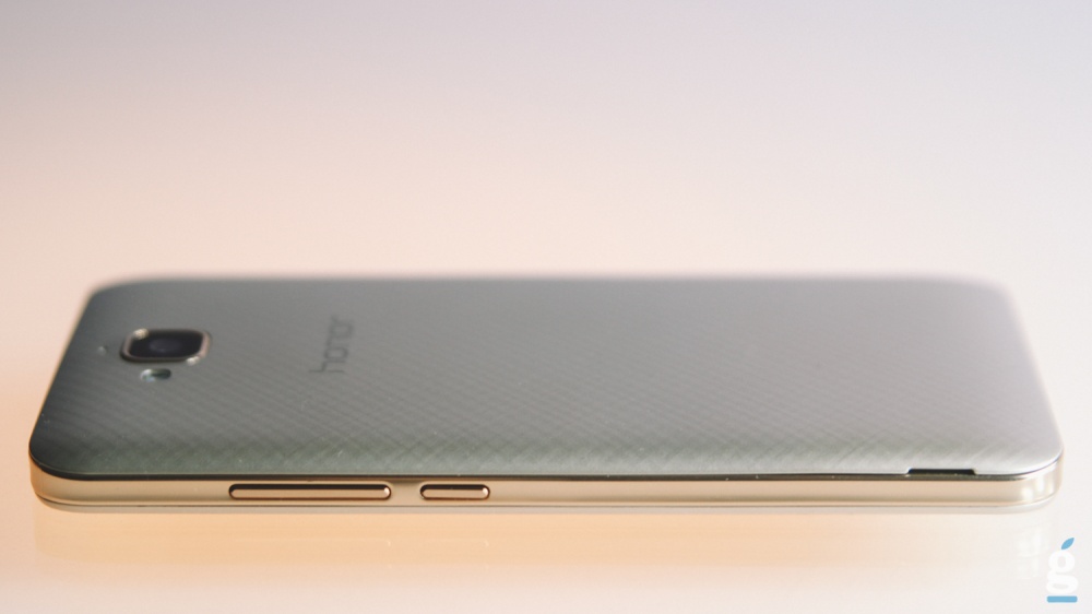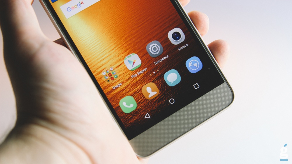 Передняя панель Honor 4C Pro имеет едва заметную текстуру, что делает устройство нескучным. А 72% поверхности занимает пятидюймовый IPS-дисплей с разрешением 1280х720 точек. Плотность пикселей в пересчете на дюйм составляет 296 ppi. Экран смартфона имеет достаточный запас яркости, хорошую цветопередачу и близкие к максимальным углы обзора. Разрешение выдает в нем принадлежность к бюджетному классу, однако на качестве матрицы производитель не стал сильно экономить — картинка смотрится отлично.