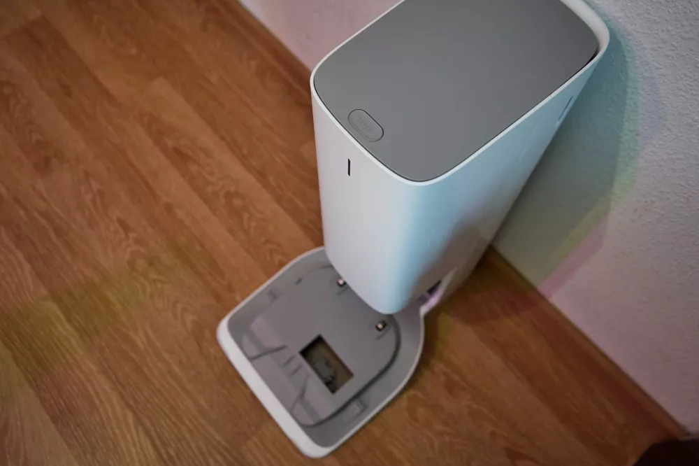 Весь процесс уборки сопровождается мигающим индикаторам состояния, прибавляющим футуристичности дизайну устройства. Помимо этого, за движением и траекторией можно следить в реальном времени на карте помещения. По завершению уборки робот возвращается на базу для подзарядки, выгрузки пыли и сразу направляет отчет об этом в приложение SmartThings. Процесс очистки весьма шумный, поэтому не рекомендую размещать станцию самоочистки в спальне или гостиной. Это обуславливается высокой мощностью всасывания, которая необходима для удержания всей пыли внутри контейнера.