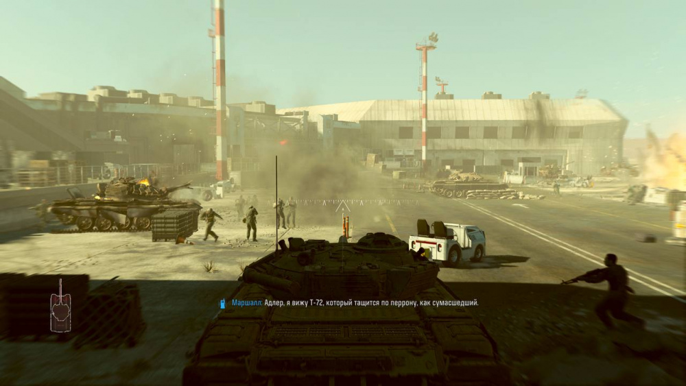 При этом создатели очень грамотно подали общий ритм игры. Вооруженные стычки не раз сменяются откровенно душными отрезками, но никогда не завершаются скучно. Например, можно добрые полчаса перебирать ветки диалогов с важными шишками, и только глаза начинают закатываться от скуки, геймплей перехватывает инициативу и вы несетесь на байке по крышам проезжающих автомобилей или рассекаете на танке по фойе аэропорта, чтобы остановить точным выстрелом улетающий самолет.