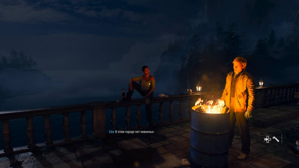 От начала и до финальных титров у меня ушло около одиннадцати. Удовольствие можно растянуть, если исправно общаться с товарищами после каждого эпизода и заниматься поиском загадок. В диалогах раскрываются характеры персонажей, их прошлое, взгляды на жизнь, отношение к второстепенным героям.