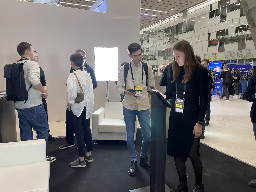 Честно признаться, каких-либо любопытных разработок встретить не пришлось. Как я и говорил ранее, выставка нацелена скорее на решение корпоративных задач. Мне же было интересно что-то потестировать, пощупать, а не слушать о перспективности абстрактных стартапов. Из подобного внимание привлекла VR-площадка, которая на деле оказалась тренажером для сотрудников ЗАГСа, директоров школ и работников жилищно-коммунальных услуг. По идее программа симулирует непредвиденные ситуации на рабочем месте. Со слов представителей это помогает быстрее адаптироваться к конфликтам и отточить правильные действия для их решения.