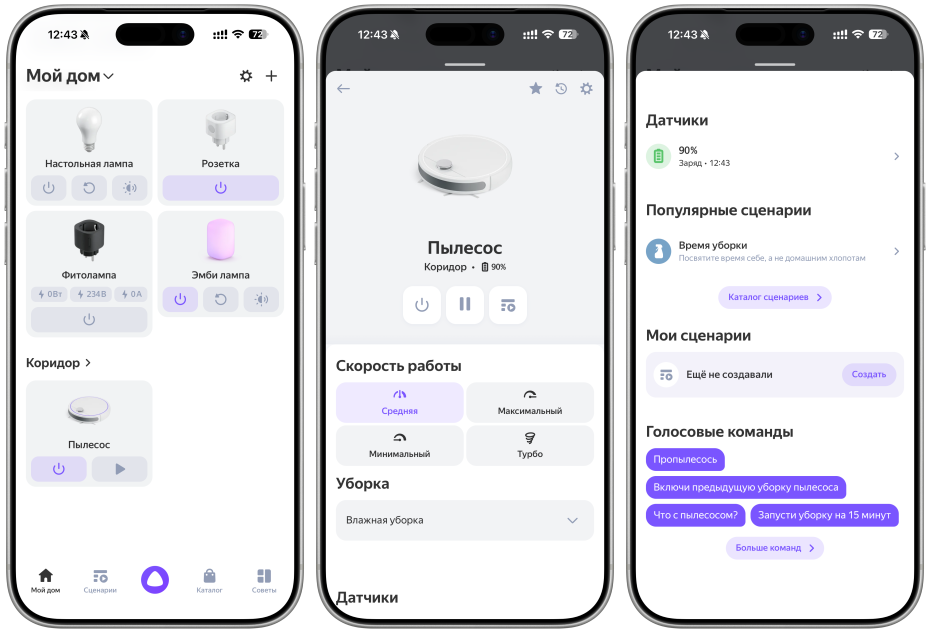 Добавил пылесос в умный дом Яндекса