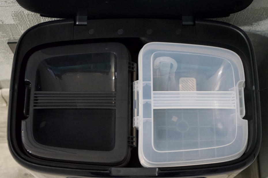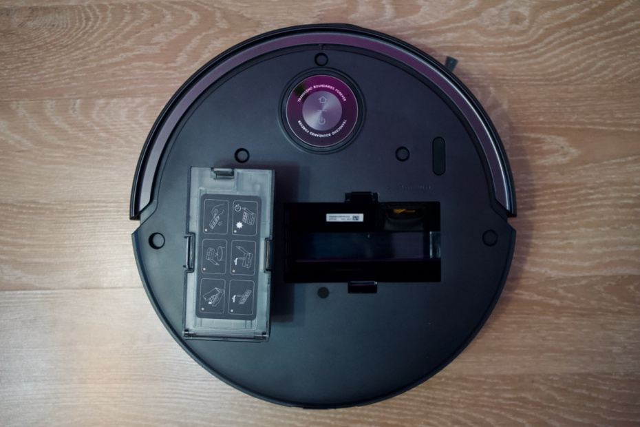 Объем пылесборника в самом роботе небольшой — всего 0,21 л, но это не имеет значения, так как после каждой уборки (или даже в процессе) он сбрасывает мусор в большой мешок на базе. Процесс самоочистки громкий, длится около 10-15 секунд, но зато почти полностью освобождает вас от контакта с пылью.