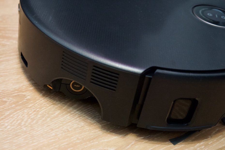 Робот выполнен в классическом форм-факторе «таблетки» с выступающей башней лидара. Сверху расположены кнопки управления, но, скорее всего, вы нажмете их всего один раз при первой настройке, так как всё управление уходит в смартфон или к голосовому помощнику.