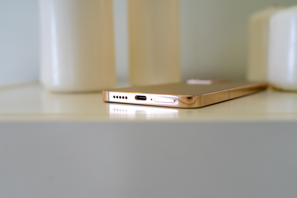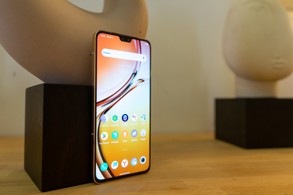 На верхнем торце размещено отверстие дополнительного микрофона, а ни нижнем слева направо — лоток сим-карт, основной микрофон, разъем USB-C и динамик. Все физические элементы управления, а именно клавишу блокировки экрана и кнопки регулировки громкости, производитель вынес на правую грань. Мне такое решение не очень нравится, поскольку я предпочитаю, когда эти элементы разделяют.