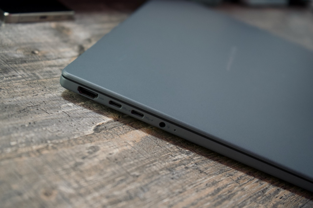 На левой грани размещены HDMI, два порта USB-C (USB 4.0 Gen3) и разъем 3,5 мм для подключения проводной гарнитуры. Порт HDMI — редкость для столь компактных ноутбуков. На правой грани разместился один USB-A (USB 3.2 Gen2). Получается все самые основные потребности по портам в дороге закрыты. Подключить телевизор или проектор для презентации в офисе клиента? Вообще не вопрос, даже переходник не потребуется. Для зарядки используются универсальные USB-C. Подключить внешний накопитель или кардридер? Запросто. Для этого имеется USB-A.