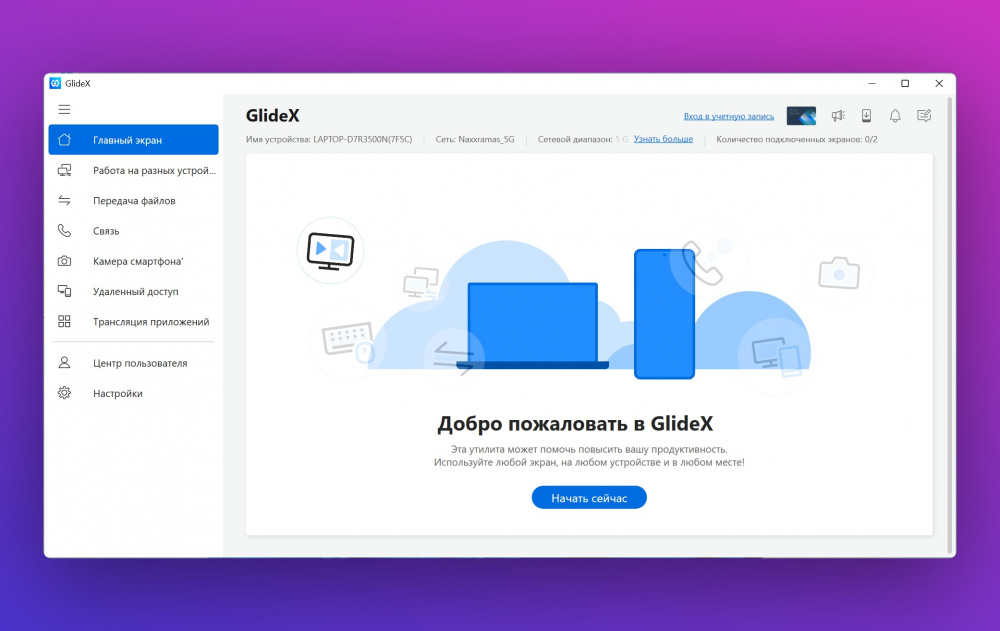 - GlideX — расширяет экранные возможности, позволяя дублировать экран на внешний монитора, а также помогает связывать ноутбук и смартфон в единый экосистемный продукт