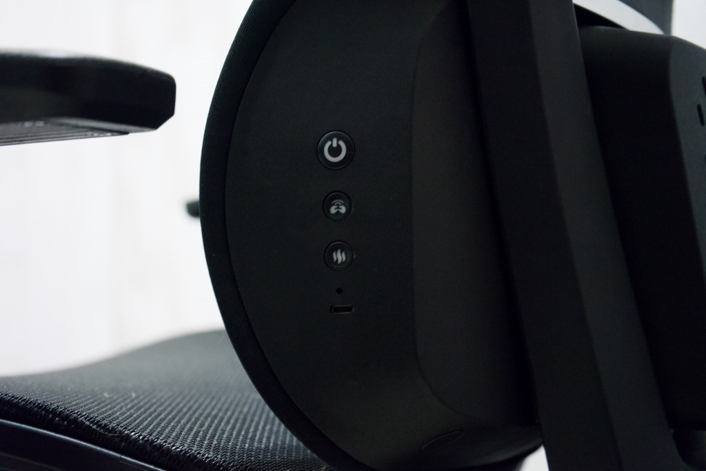 Одна из самых интересных фишек — в валик для поясницы встроен массажер и обогреватель. Эта штука работает от встроенного аккумулятора емкостью 5000 мАч. Массажер работает в двух режимах мощности и позволяет неплохо размять поясницу в конце рабочего дня. Для включения и переключения режимов слева размещены три клавиши и зарядный порт USB-C. Функция обогрева может быть полезна в межсезонье, когда отопление еще не включили.