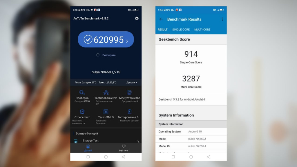 За быстроту RedMagic 5S отвечает процессор Qualcomm Snapdragon 865 при участии 8 ГБ оперативной памяти LPDDR5 и накопителя UFS 3.1 на 128 ГБ. Смартфон работает очень шустро также во многом благодаря хорошо оптимизированной оболочки с плавной анимацией. Приложения запускаются быстро, а во время перелистывания экранов и меню лагов не наблюдается.В бенчмарках AnTuTu и Geekbench смартфон набрал 620995 и 3287 (многоядерный тест) соответственно. Со всеми самыми тяжелыми играми RedMagic 5S справляется без проблем. Тестировал устройство в Call of Duty: Mobile и LoL: Wild Rift. На протяжении длительных часовых игровых сессий корпус не нагревается и приятно охлаждает ладони с помощью встроенных кулеров, просадок в FPS я не встречал.