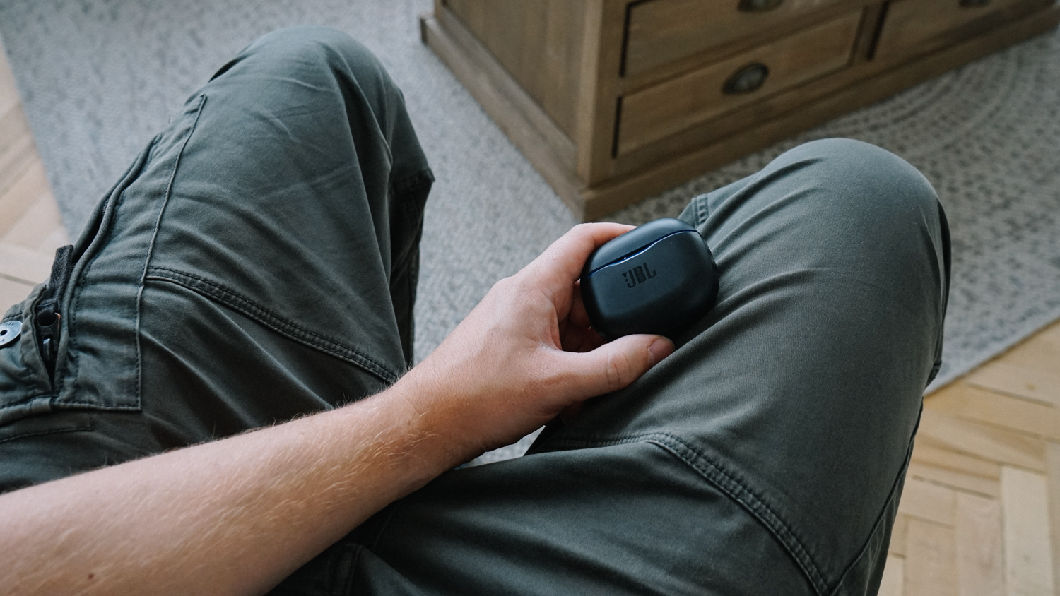Форма JBL TUNE 120TWS овальная и немного вытянутая, напоминает каплю или небольшую гальку. На первый взгляд, могут возникнуть опасения насчет эргономичности, но с этим порядок. На поверку наушники оказались достаточно цепкими и уверенно держатся в ушах. Разумеется, если предварительно выбрать наиболее подходящие насадки из комплекта. За несколько недель использования у меня не было ощущения, что они могут случайно вывалиться из ушей. И даже когда надеваешь или снимаешь одежду потом не приходится искать слетевший наушник. Впрочем, это не значит, что их можно рекомендовать для спорта. Модель все-таки повседневная и рассчитана на прогулки, прослушивание музыки в транспорте и офисе, максимум — на пробежки без особого фанатизма. Если присматриваете наушники для тренировок — у JBL есть специально разработанные продукты с дополнительной фиксацией и защитой от влаги.