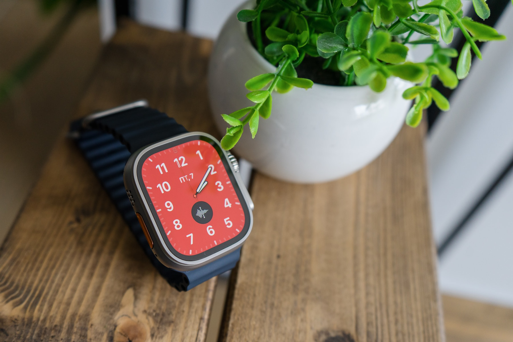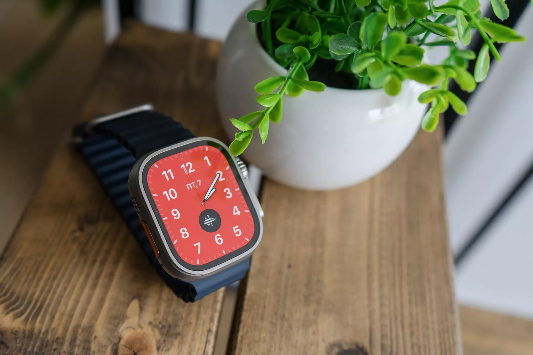 Начну с особенностей внешнего вида, которые мне понравились. Apple Watch Ultra получили плоский циферблат и утопленный в рамку корпуса экран — он лишился закруглений, а соответственно и плавного силуэта. Такое решение смотрится свежим. Часы стали выглядеть брутальнее.