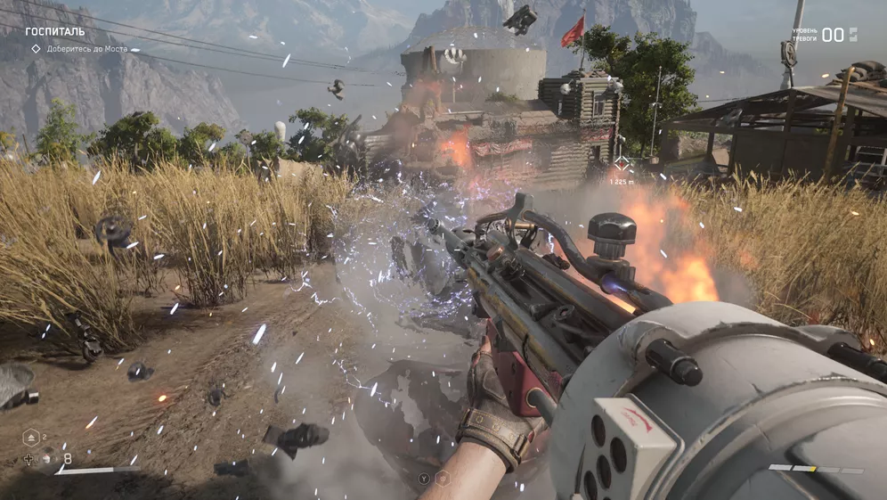 Стрельба в Atomic Heart мне не очень понравилась — противник буквально как губка впитывает пули. Нет ощущения от нанесения урона огнестрельным оружием. Хочется буквально на кончиках пальцев ощущать, что выстрел с шотгана причиняет, как минимум дискомфорт, взбесившемуся роботу — пусть с него сыпятся отвалившиеся детали и сносится лицевая обшивка.
