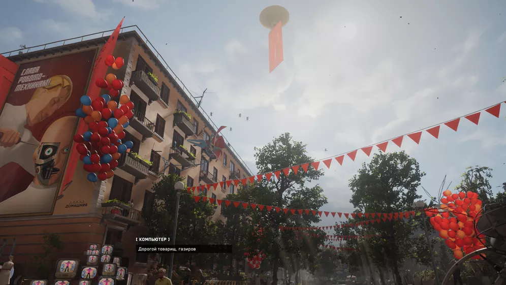 Разработчикам отлично удалось передать атмосферу технологически развитого СССР с ностальгическим шлейфом. Перемещение по локациям вызывает визуальный восторг, который сопровождается приятными воспоминаниями из далекого детства, вызываемыми знакомыми предметами советского обихода. Все эти ретро-элементы были бережно пропущены гейм-дизайнерами через призму футуризма. Так у знакомых предметов сохранилась идентичность, и появилась самобытность.