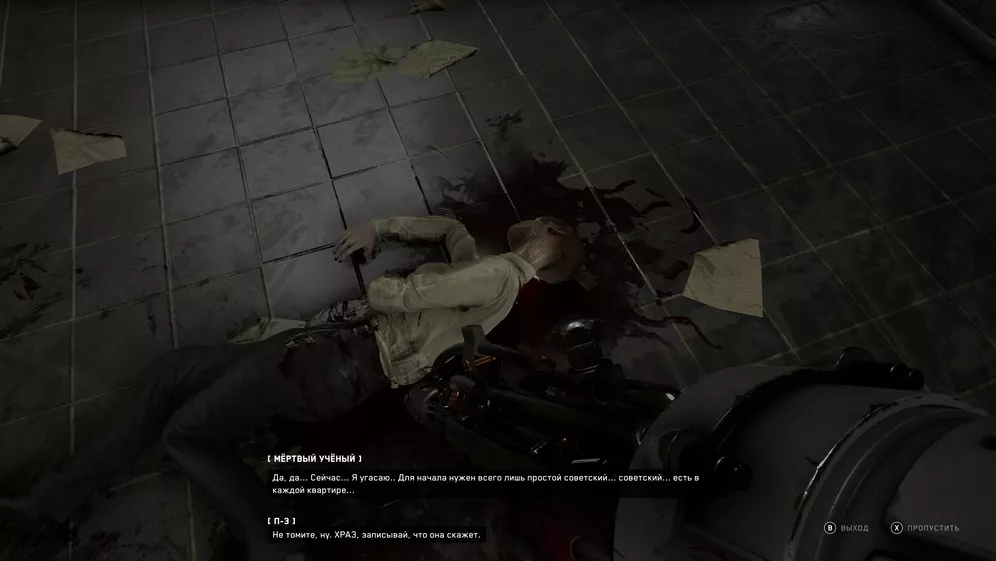 Жанрово Atomic Heart очень сильно старается быть Immersive sim (Bioshock, Prey и т.д.), поэтому подача сюжета вас ожидает соответствующая. По ходу прохождения вам все расскажут и покажут — пробелов в понимании происходящего не останется. Для любителей максимального погружения предусмотрены две дополнительные возможности — чтение писем в компьютерах и разговоры с трупами. Кое-что попутно рассказывает ХРАЗ и дополнительно подталкивает игроков к некоторым выводам.