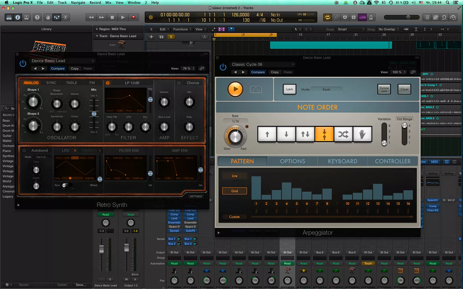 Говоря о синтезаторах и новых настройках Midi FX нельзя пропустить появление встроенного арпеджиатора. С его помощью я смог попробовать в деле новый встроенный синтезатор Retro Synth, который очень круто работает.