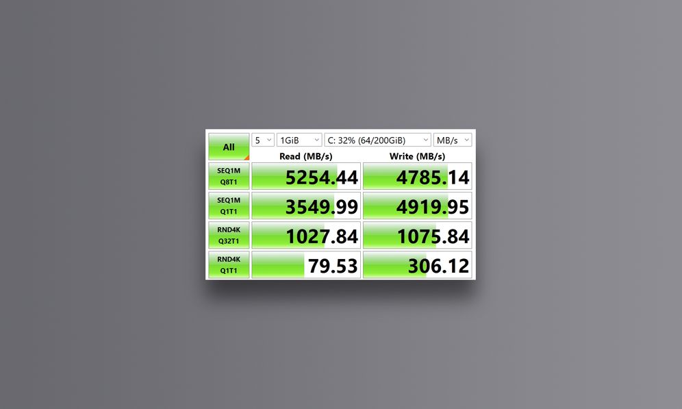В конфигурации нашего тестового HUAWEI MateBook 16s (2023): процессор Intel Core i9-13900H 13-го поколения, 16 ГБ оперативной памяти типа LPDDR5, интегрированная графика Intel Iris Xe Graphics и твердотельный накопитель на 1 ТБ. Протестировали ноутбук в бенчмарках CrystalDiskMark, Geekbench и Cinebench — результаты прикладываем на скриншотах ниже.