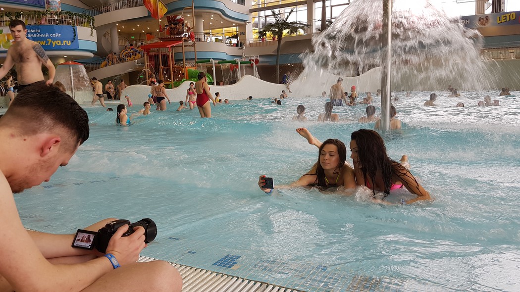 Мы решили проверить, не подведет ли защита Samsung Galaxy S7 в боевых условиях, и отправились в аквапарк, где устроили смартфону и его камере настоящую проверку на прочность. Высокая влажность, брызги, катание с горок, съемка под водой и селфи под водопадиками — все эти и другие испытания Samsung Galaxy S7 прошел идеально. А по итогам тестирования смартфона мы решили поделиться советами о том, как лучше всего снимать в таких условиях. В первую очередь, нужно обратить внимание на глубину — снимать под водой можно, делать эффектные селфи на спуске с горки тоже, однако нельзя забывать, что безопасный предел погружения составляет полтора метра. Если случайно выронить устройство в глубоком бассейне и сразу нырнуть за ним, обращаться в сервис может быть не придется, однако шанс выхода из строя все-таки есть. Также не стоит забывать, что смартфон легко может выскользнуть из мокрых рук, упасть на твердую поверхность и разбиться. Стоит быть аккуратней!