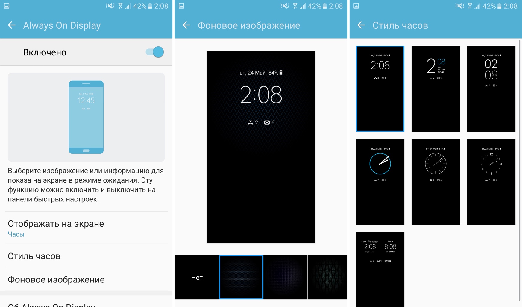 Впрочем, кроме небольших изменений в оформлении программного обеспечения и улучшении уже знакомой функциональности компания Samsung поработала над добавлением новых возможностей для пользователя. Одной из главных и самых заметных новинок стал режим Always On Display, когда на экране смартфона всегда отображаются часы, дата, погода и напоминания о событиях. В системных настройках могут выбрать формат отображения информации, добавить небольшую фоновую картинку, а радикально изменить внешний вид Always On Display поможет магазин с темами оформления. SDK теперь включает в себя возможность редактирования дизайна всегда включенного экрана. Важно отметить, что эта функция практически не сказывается на времени автономной работы смартфона. По крайней мере, даже когда экран всегда включен, Samsung Galaxy S7 демонстрирует продолжительную работу от одной зарядки. Лично для меня Always On Display стала одним из главных изменений, которые делают работу с устройством удобней и позволяют реже брать смартфон в руки, чтобы разблокировать его для просмотра времени или каких-то событий.